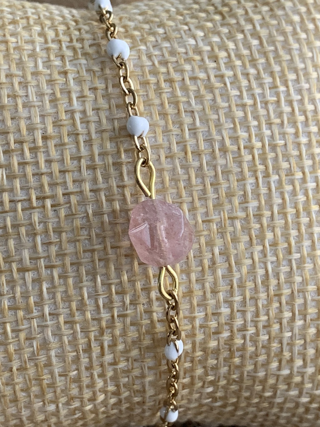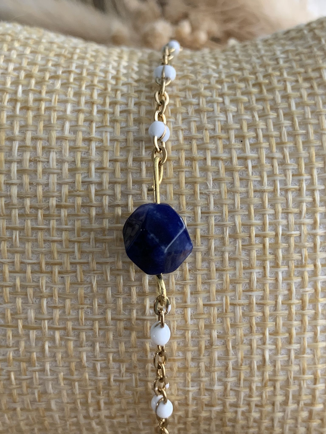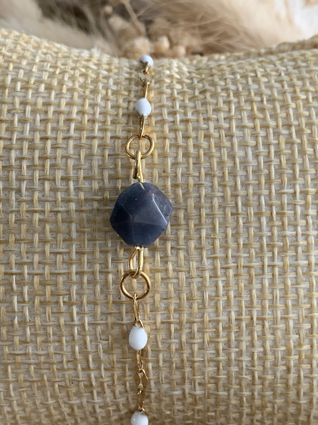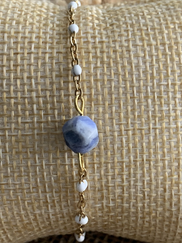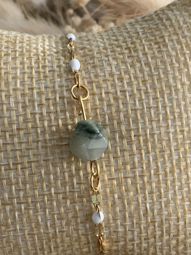 Le bracelet Constellation est une invitation à porter un fragment de ciel au creux du poignet. Chaque pierre, délicatement choisie, évoque une étoile unique, une énergie singulière, reliée aux autres par un fil doré, comme une constellation lumineuse.